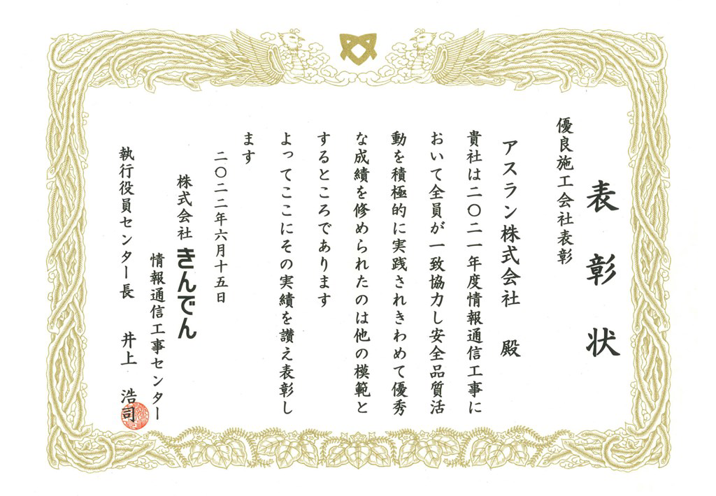 アスラン株式会社は通信と建築の豊富な経験と知識が 強みです。高い技術力を育み、通信インフラを守り続けることで、地域社会の暮らしの安心を支えてきました。